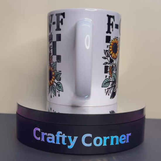 Start your day with a touch of attitude and style with this Mug & Matching Coaster Set featuring a bold raven, vibrant sunflowers, and the playful “F-CAW-F” design. 🌻🖤