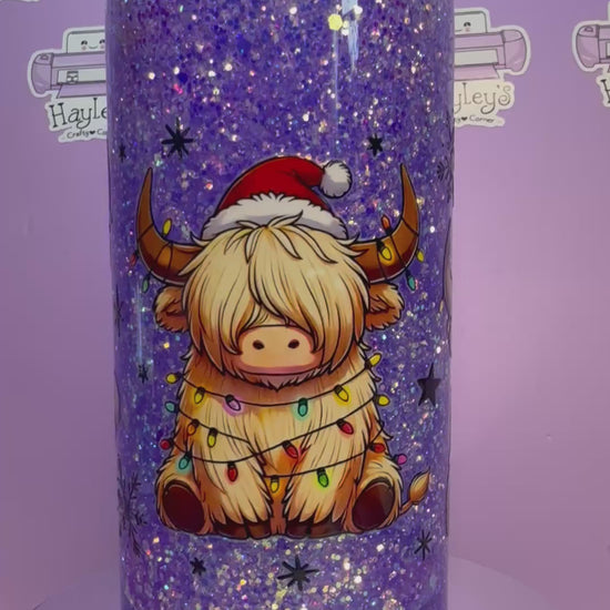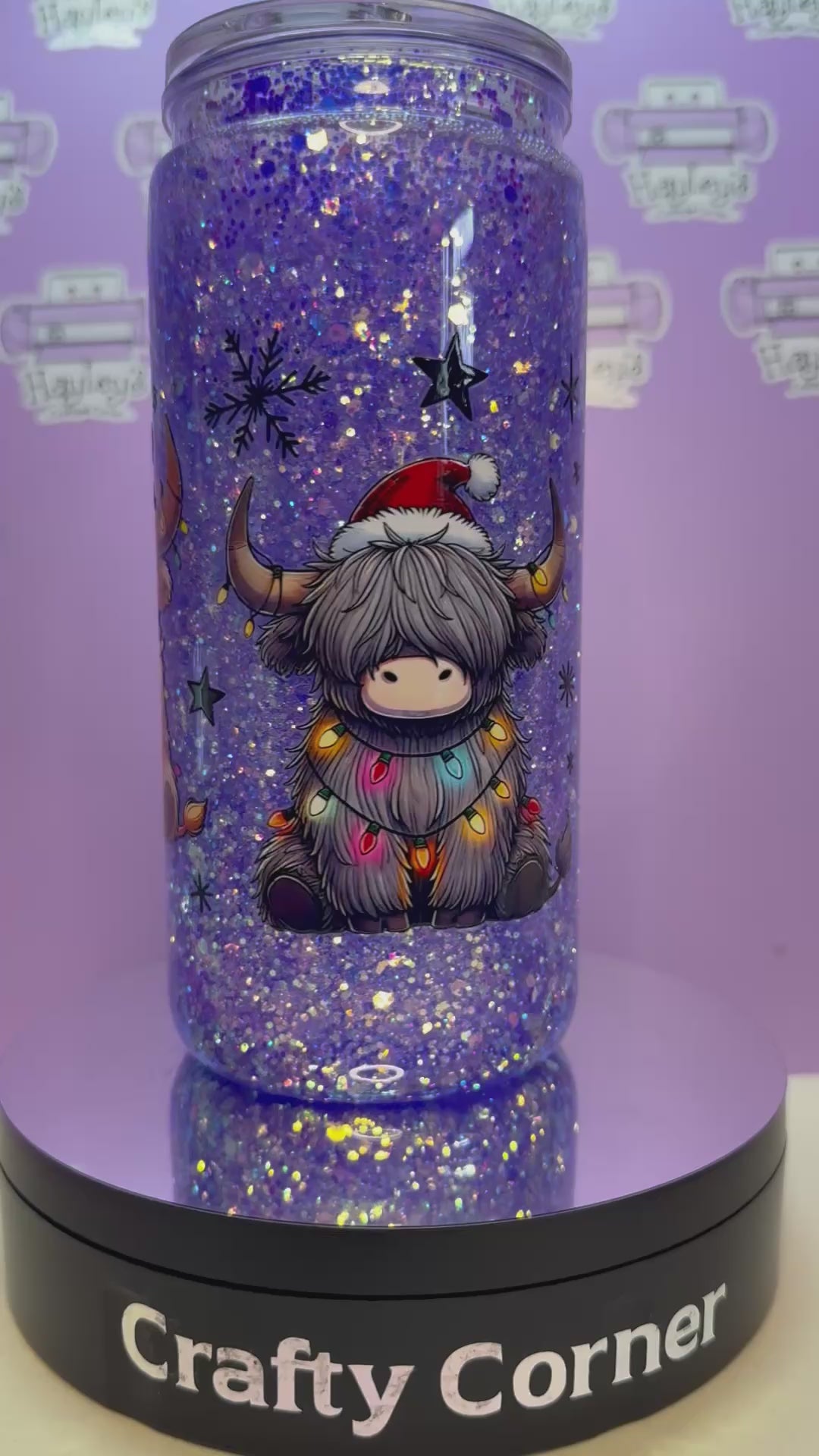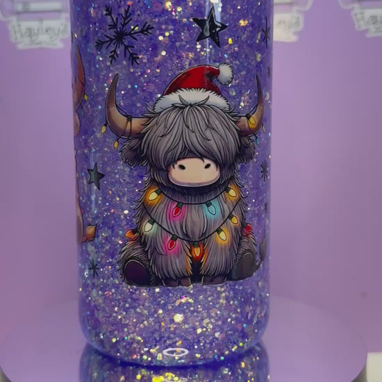 Bring some festive sparkle to your drinks with this adorable Highland Cow Snow Globe Cup! 🐮✨ Featuring a super cute Highland cow in a Santa hat, wrapped in colourful Christmas lights, this 16oz tumbler is filled with glittery snow globe magic that swirls with every sip.