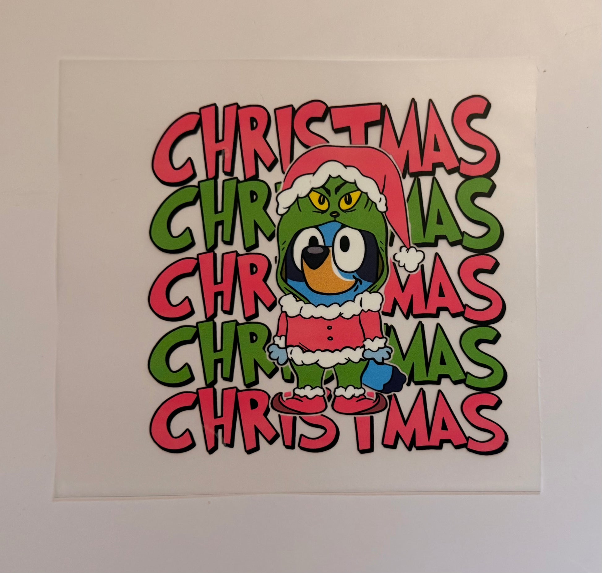 Bring festive fun with a cheeky twist using this Bluey Grinchy Christmas Character DTF Heat Transfer! πŸ’šπŸŽ„ Featuring a playful Christmas character dressed in a Grinch-style outfit πŸŽ…, set against bold β€œCHRISTMAS” lettering in red and green, this design is perfect for anyone who loves a mix of cute and mischievous holiday vibes.
