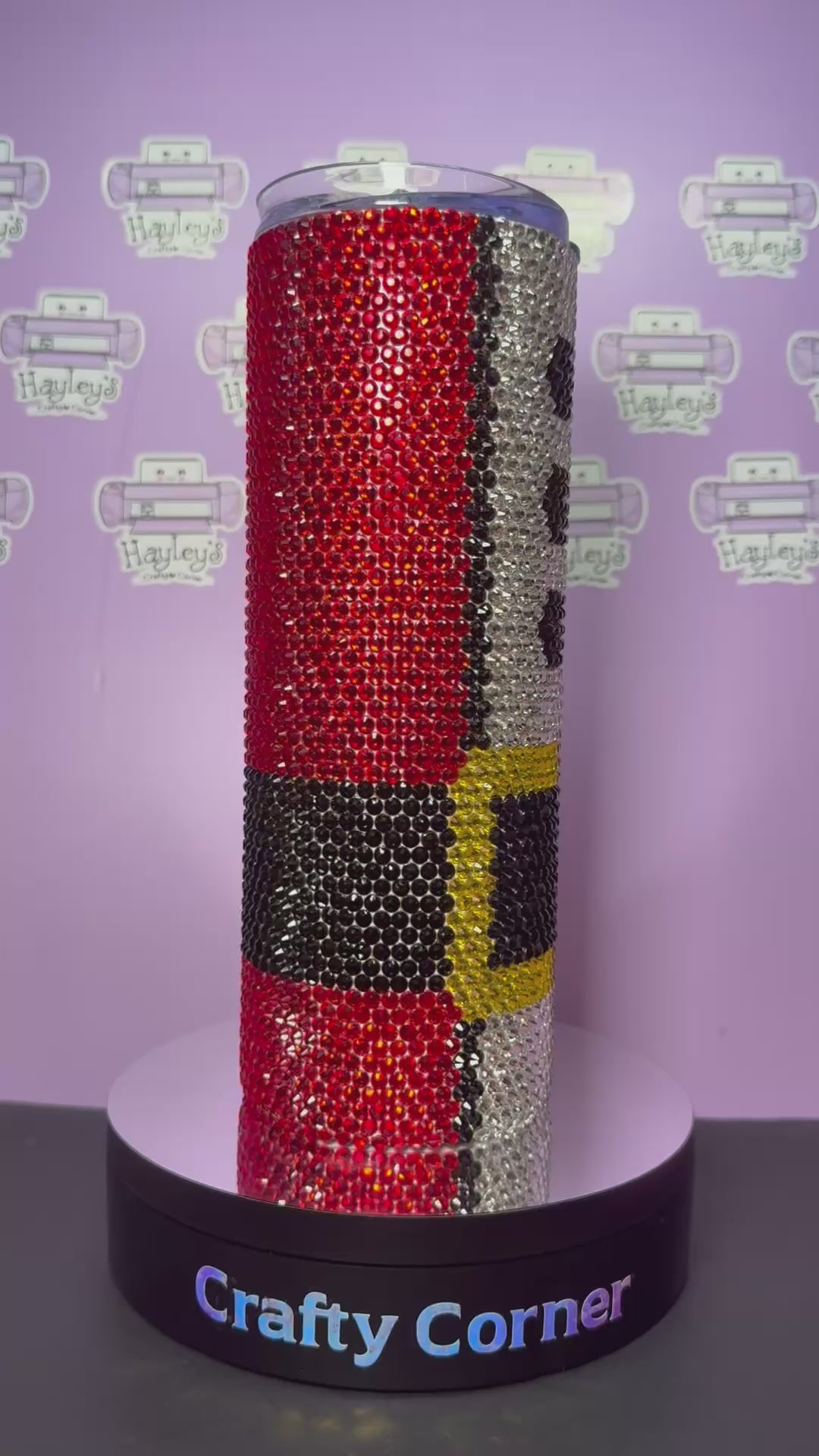 Add some sparkle to your Christmas season with this stunning 20oz Santa Suit Bling Tumbler! Fully hand-adorned with shimmering rhinestones, this eye-catching tumbler resembles Santa's iconic red suit, complete with buttons and glittering belt buckle. Perfect for holiday drinks, hot chocolates, ices coffees and festive gifting!
