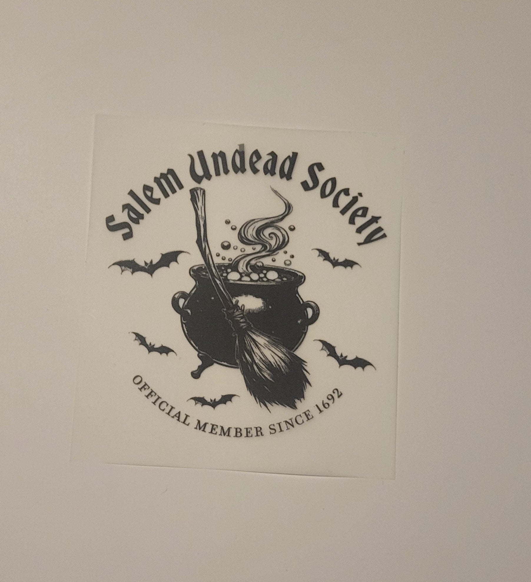 Step into the dark and mysterious with our Salem Undead Society design – the perfect addition to your Halloween projects. Inspired by gothic style and eerie Salem vibes, this bold design is perfect for costumes, crafts, and standout spooky creations.Each transfer measures approx. 4x4 in, making it a great size for smaller projects, accessories, and unique detailing.