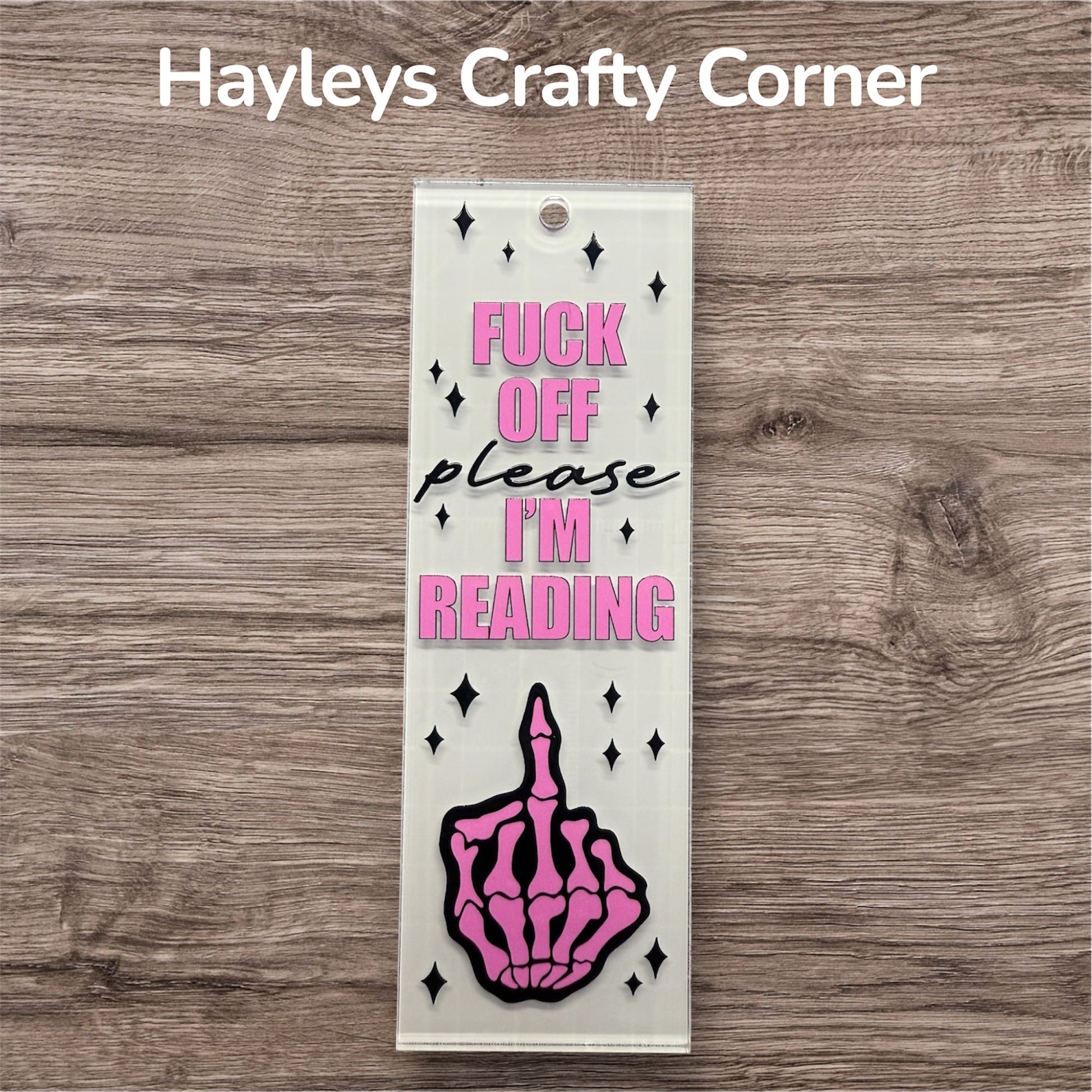 For the reader who doesn't wanted to be disturbed this bookmark says it all. Featuring a bold pink skeleton hand (with finger suggestion) and the statement "F**k Off Please, I'm reading", this is the perfect accessory for any bookworm with attitude.