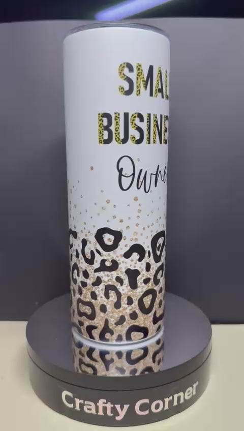 Show off your hustle in style with this bold and empowering tumbler! Designed with a chic leopard print and "Small Business Owner" statement text, this tumbler doesn't just stand out during the day-it glows in the dark too, adding a magical touch to your drinkware collection.