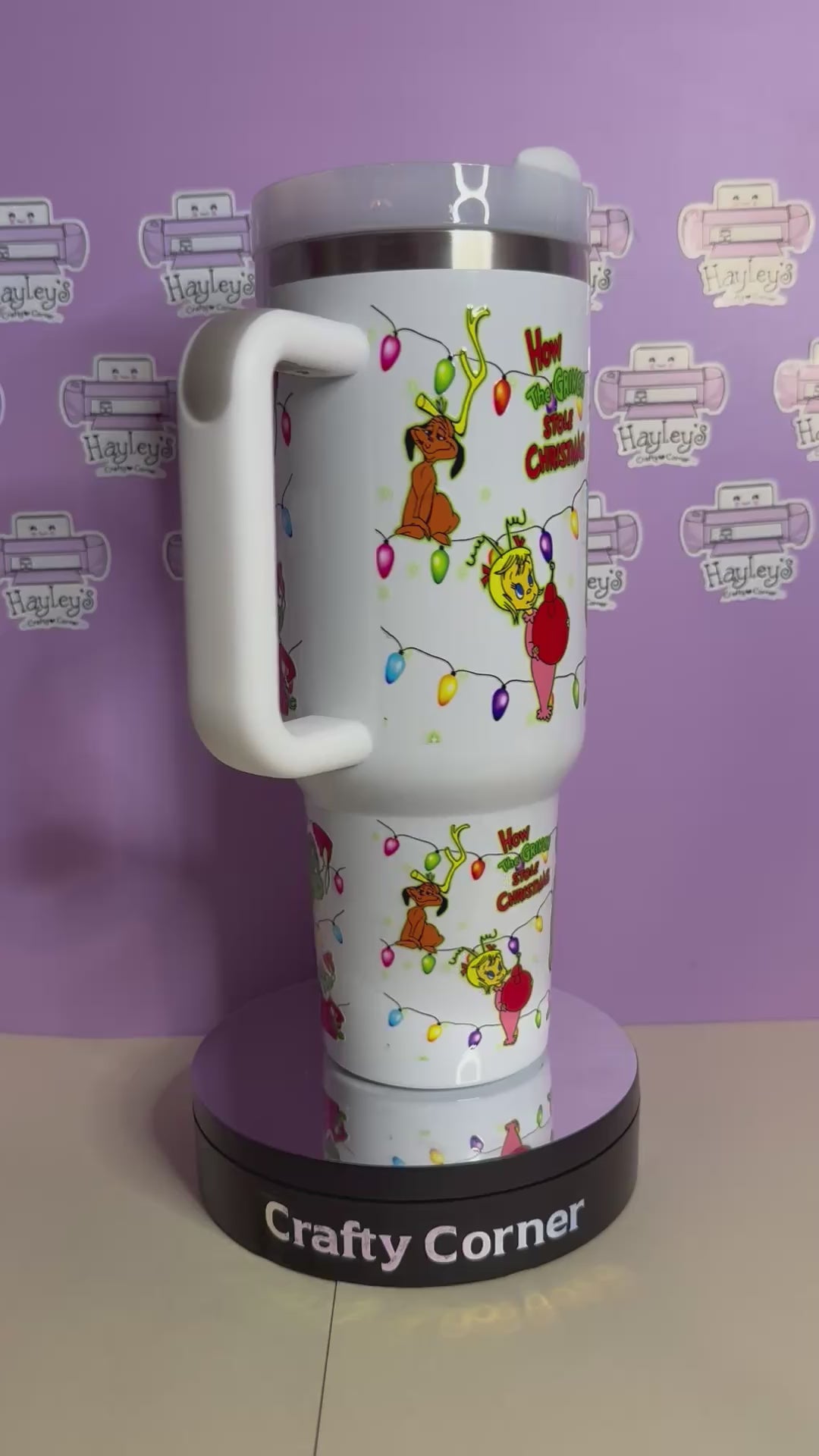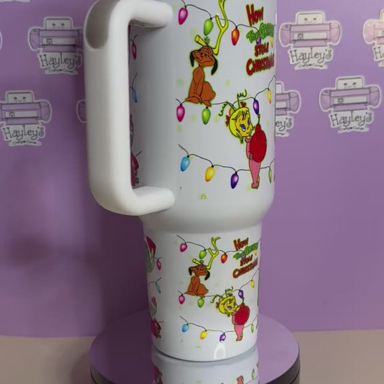 Love dogs and need your coffee (or tea) fix? This fun tumbler is perfect for you! Featuring Max & the Grinch with the phrase "If I can't bring my dog, I'm not going", it's a must-have for every dog lover this season.