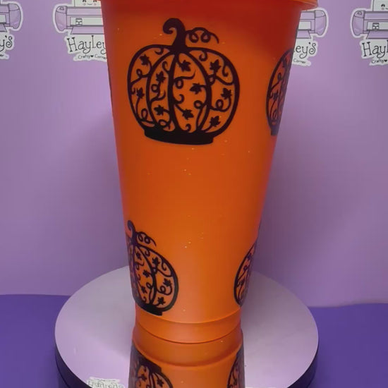 Sip in seasonal style with this festive pumpkin cup! Brifgr orange with elegant black pumpkins designs, this reusable cup is perfect for Halloween lovers and autumn vibes all year round.