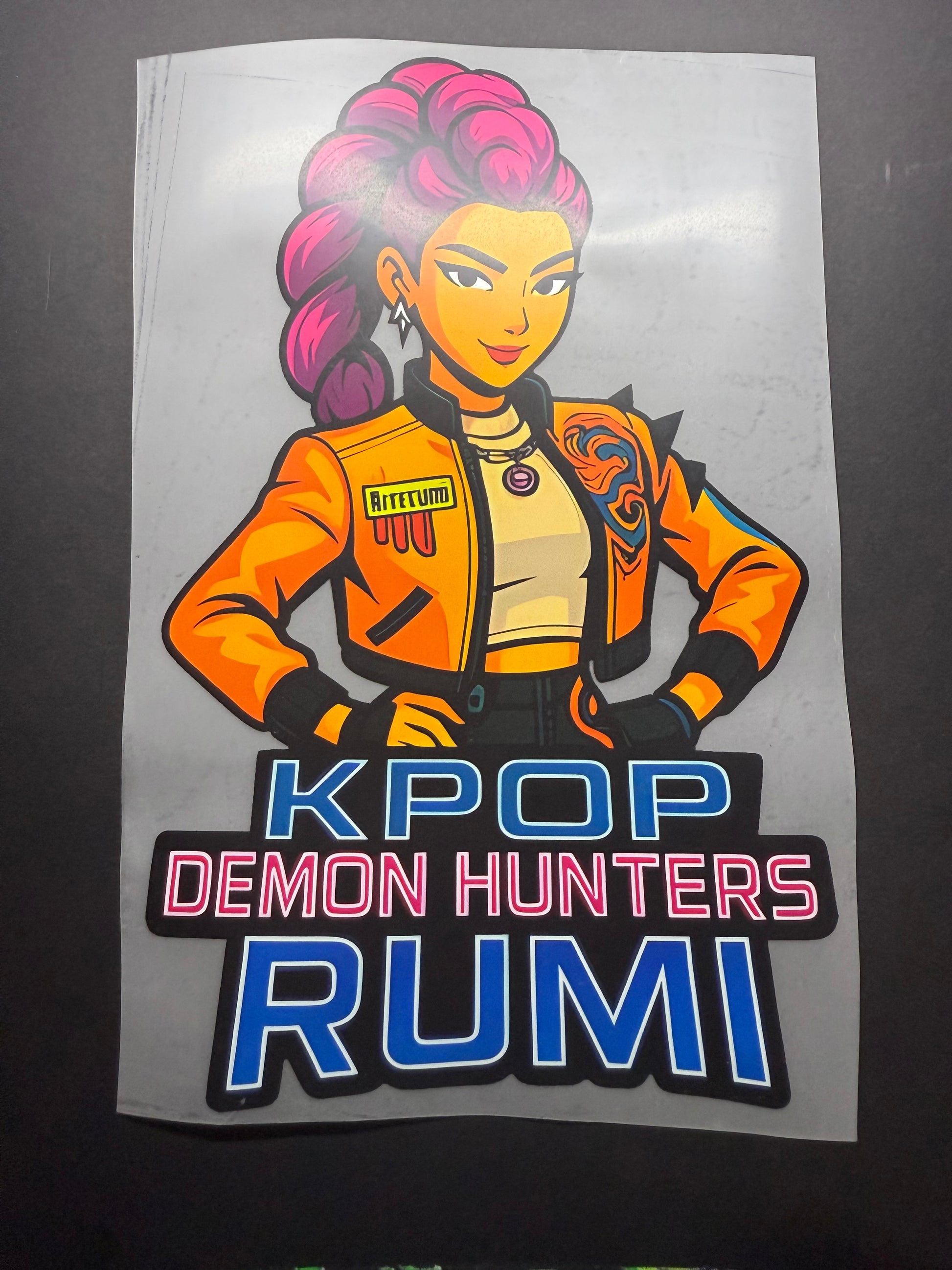 Elevate your apparel with the Rumi K-pop Demon Hunter heat transfer, designed for precision and vibrant detail. This high-quality heat transfer material ensures durable adhesion and vivid colours, perfect for adding a standout, edgy aesthetic to your garments. Ideal for crafters seeking professional-grade results, it’s compatible with most heat press machines and easy to apply, delivering a striking finish that lasts through wear and washing. Perfect for creating unique K-pop inspired fashion with a fierce, dynamic edge.