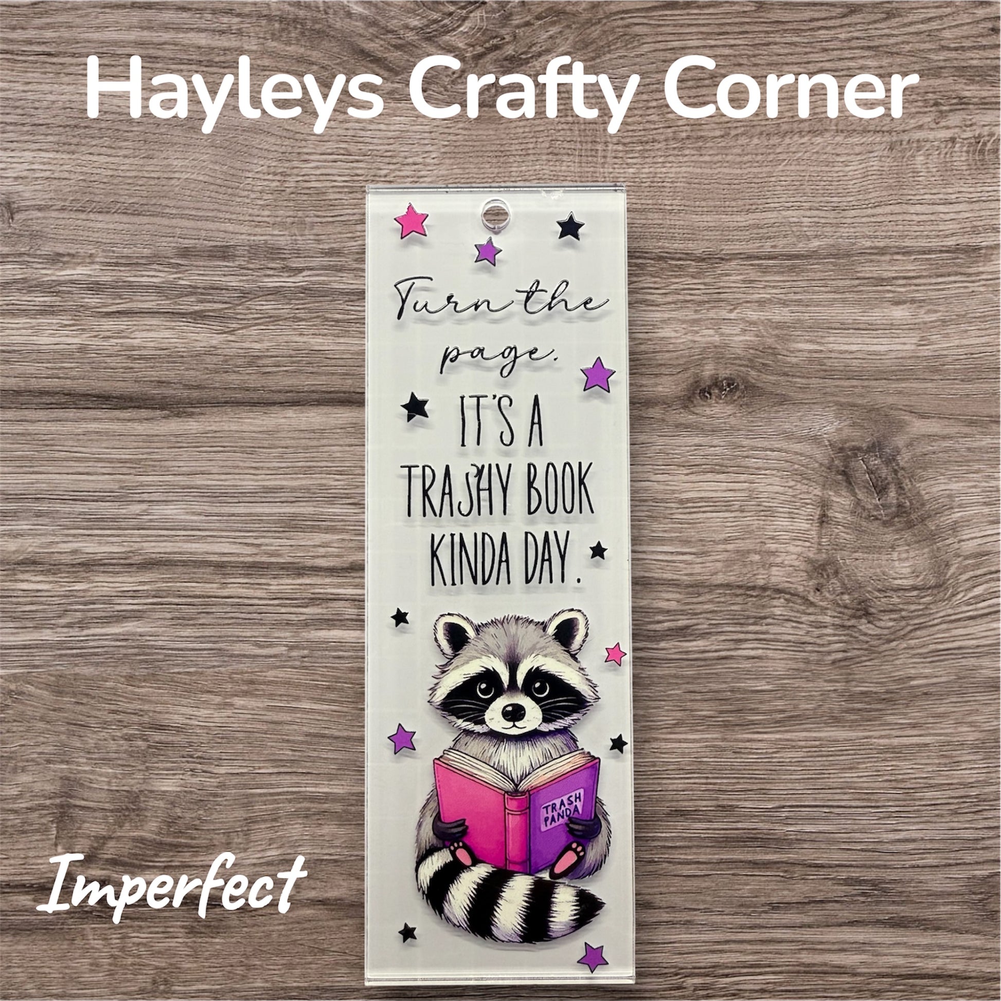 Sometimes, it's trashy book kinda day - and this bookmark is here for it! Featuring a cute raccoon ("Trash Panda") holding a booking with playful stars all around, this design is perfect for readers who love lighthearted fun in their reading accessories.